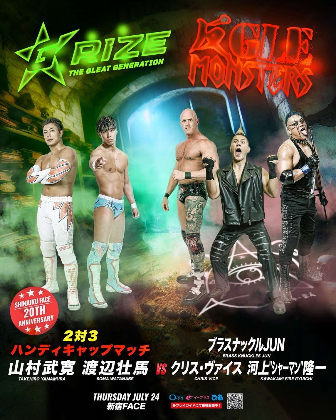 山村武寛 & 渡辺壮馬 vs 河上"シャーマン"隆一 & クリス・ヴァイス & ブラスナックルJUN