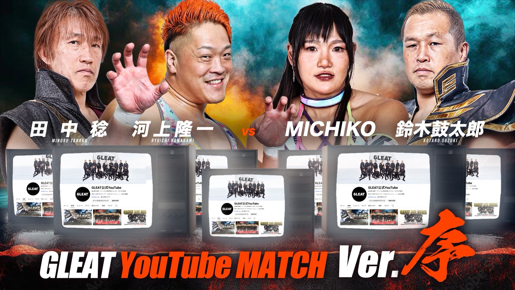 河上隆一 & 田中稔 vs MICHIKO & 鈴木鼓太郎