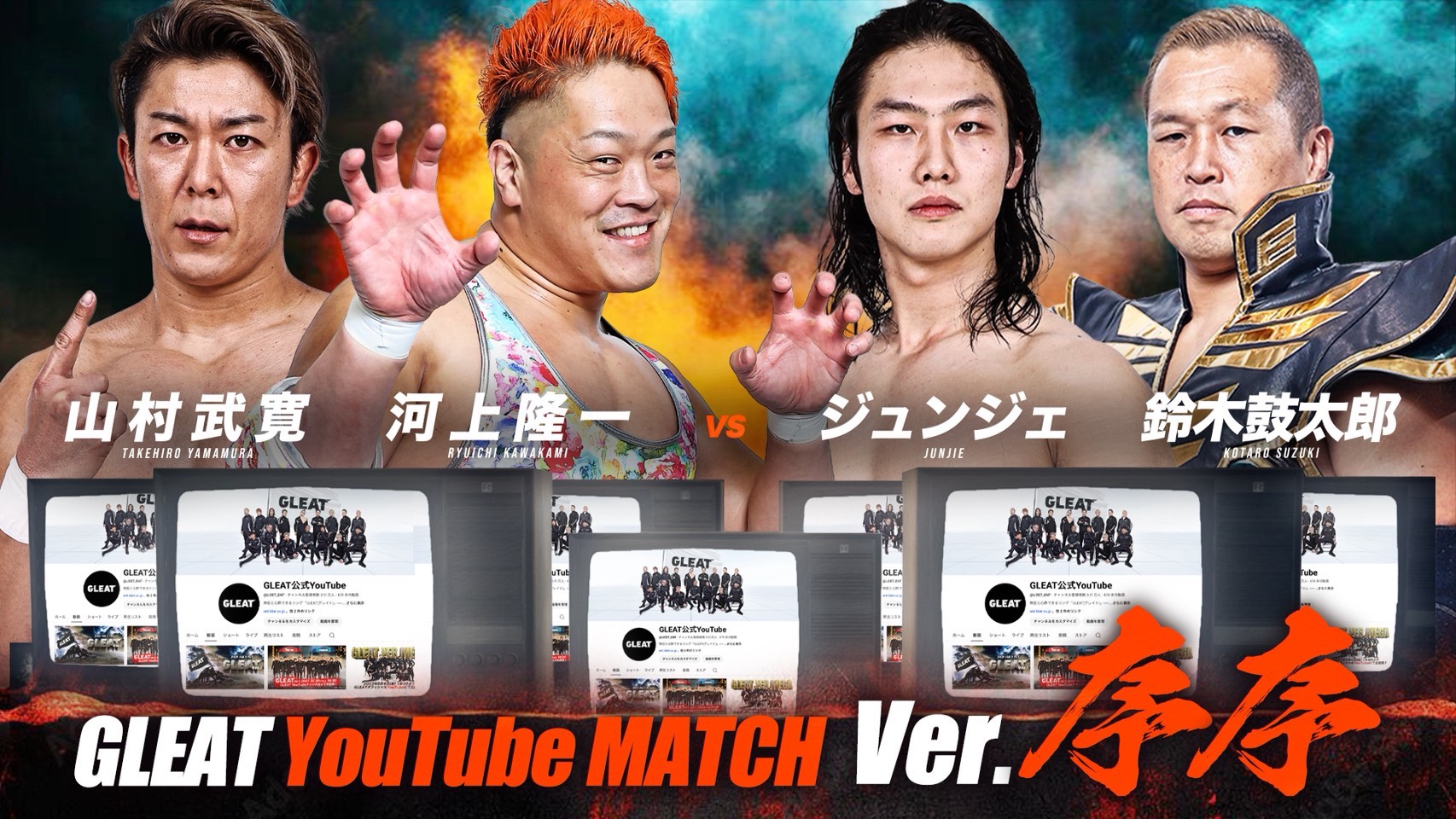山村武寛 & 河上隆一 vs ジュンジェ & 鈴木鼓太郎